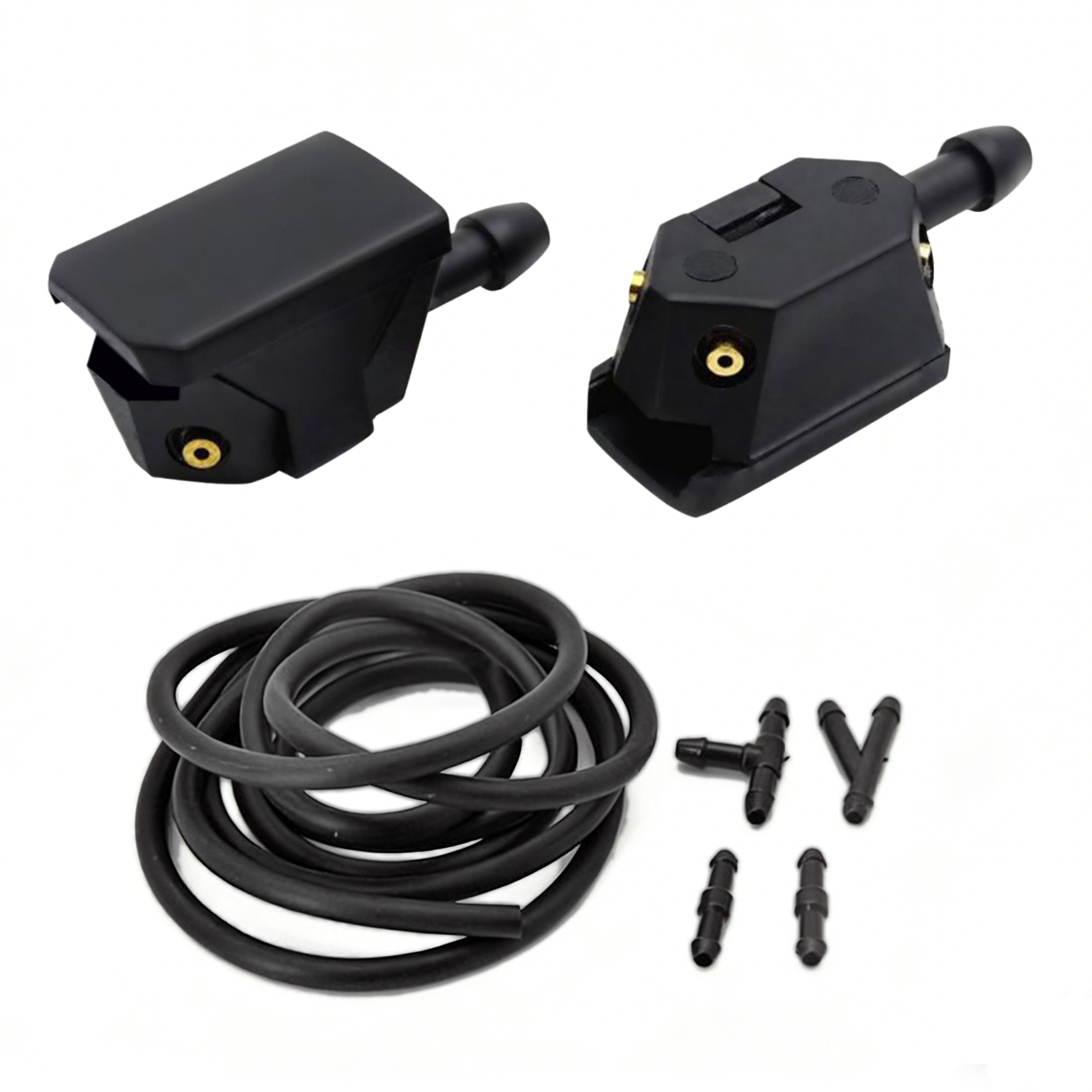 - Available in a stylish black design, these wiper nozzles will not only enhance your vehicle's looks, but also provide reliable and efficient performance. Made from high-quality materials, these nozzles are durable to ensure you get the most from your purchase.