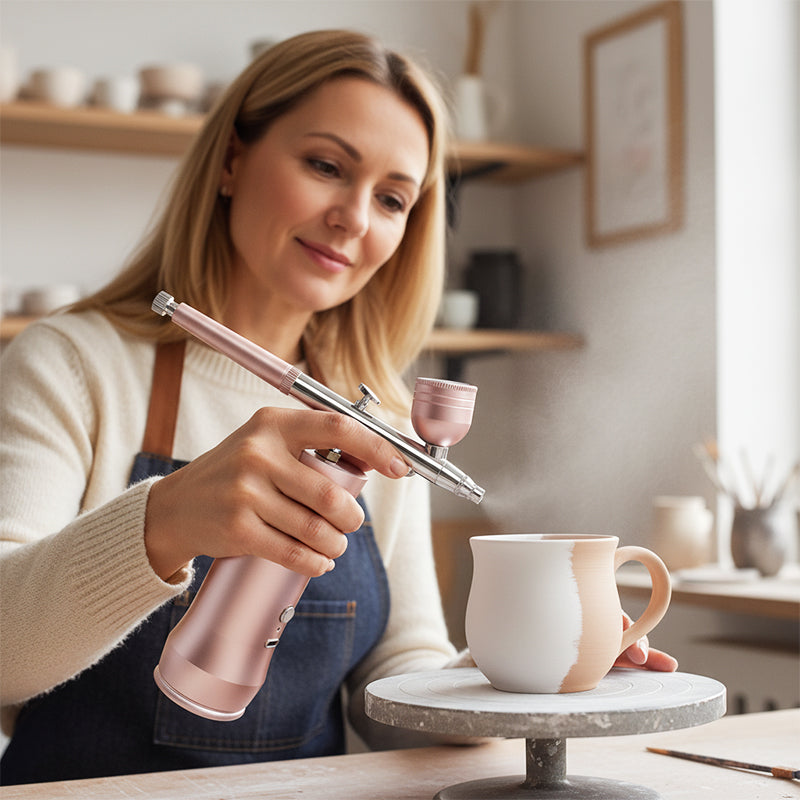 CORDLESS & PORTABLE DESIGN - The integrated rechargeable battery and compact body free you from tangled cords and bulky compressors. This offers unparalleled freedom to create anywhere, from your studio to on-location jobs, without being tied to an outlet.