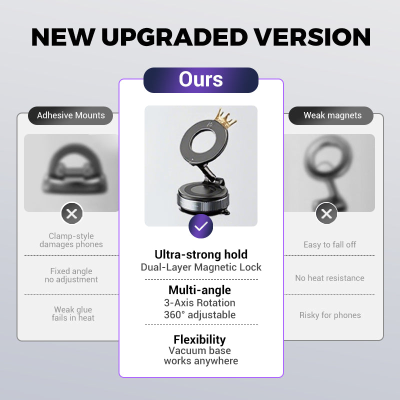 Foldable Magnetic Car Phone Holder – Strong Grip, 360° Rotation & Easy Installation for All Phones