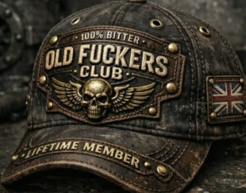 BOLD VINTAGE EMBROIDERY - Flaunt your experience with patches reading "OLD FUCKERS CLUB," "100% BITTER," and "LIFETIME MEMBER." This cap is a badge of honor, celebrating a life well-lived with unapologetic, rugged style.
