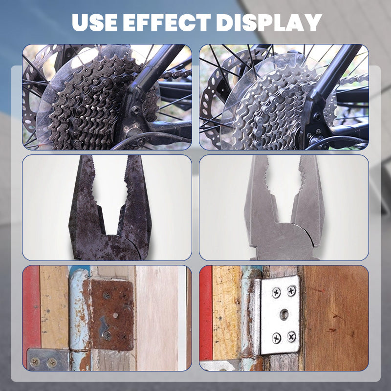 HOW TO USE: After spraying the rust remover, wait for 2-3min. Then, use sandpaper to gently rub the area to help remove the rust. It is non-corrosive and will not damage the workpiece.